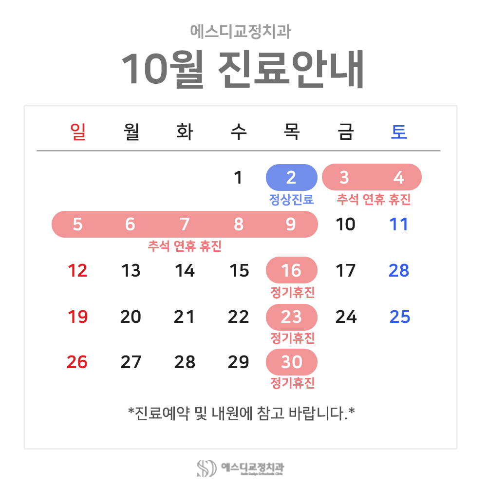 10¿ù 3ÀÏ ÈÞÁøÀ¸·Î 10¿ù 2ÀÏ ¸ñ¿äÀÏÀº Á¤»óÁø·áÀÔ´Ï´Ù.